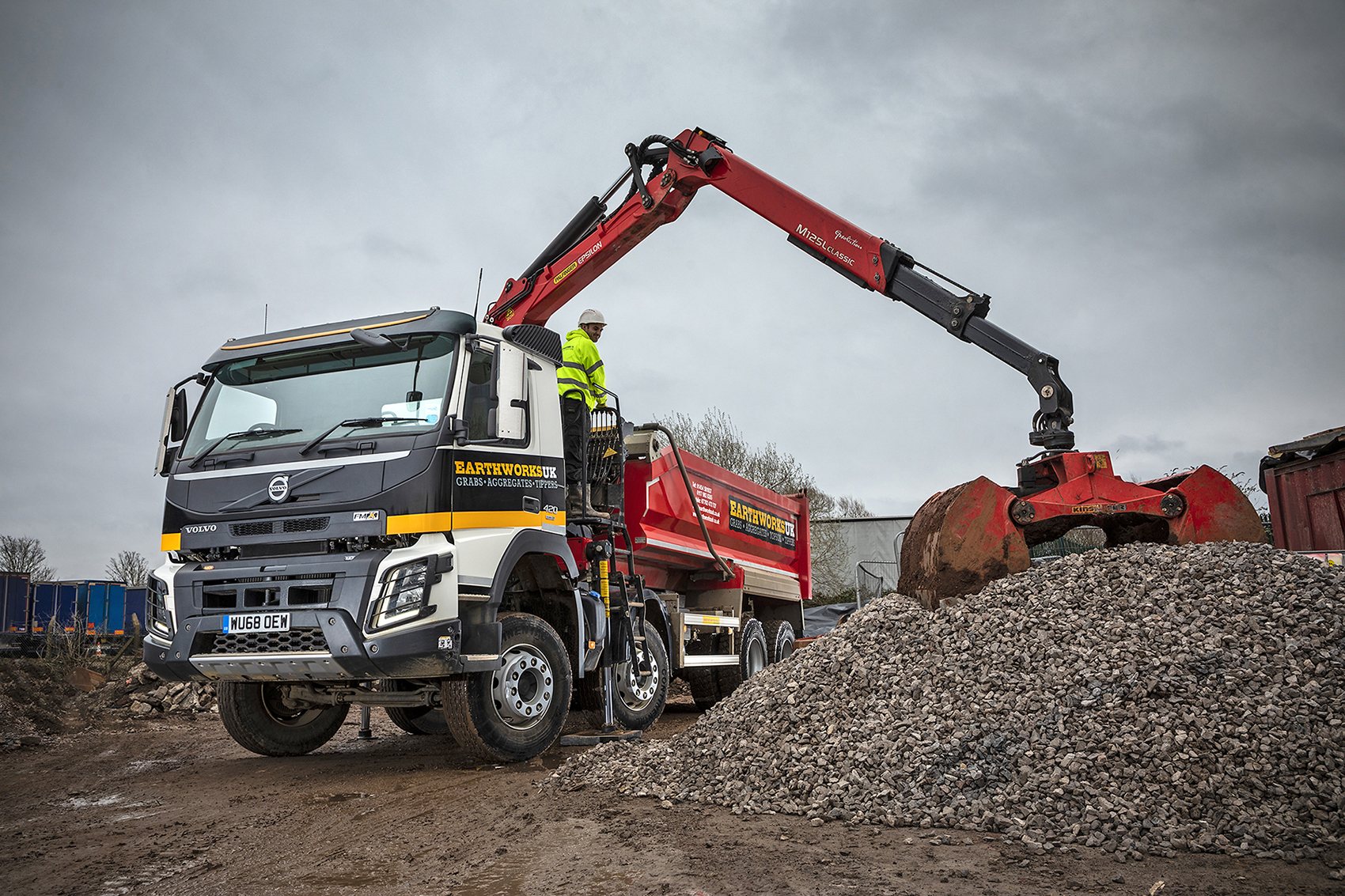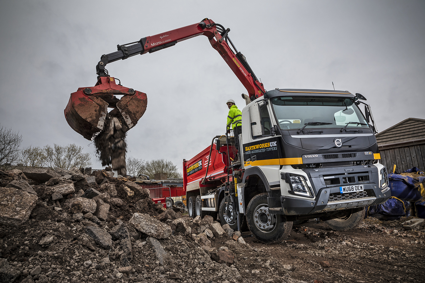 Avonmouth-based, Earthworks UK have selected a Volvo FMX rigid with a tipper grab body for its first new truck purchase. The 8x4 chassis joins a small fleet of tipper and tipper grab trucks.